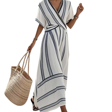 The Amelia dress captures the essence of a sun-drenched vacation with a refreshing design that radiates both luxury and freedom. The flowing fit and lightweight material ensure an effortless transition from a relaxed afternoon by the coast to an atmospheric dinner at sunset.