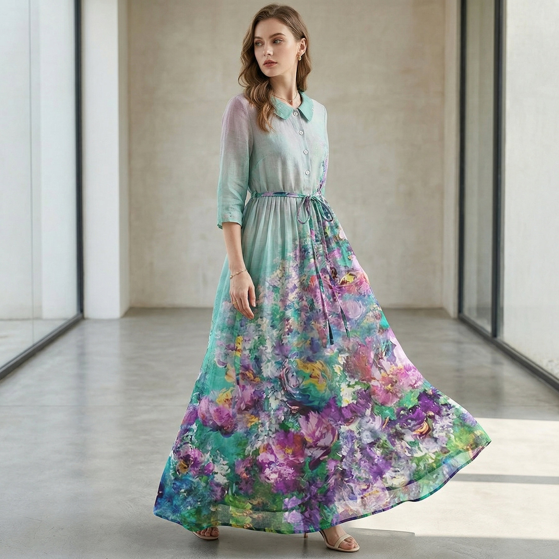 This elegant floral dress combines comfort and style effortlessly. Made from soft, breathable fabric, it feels light on the skin — perfect for fresh spring and summer days. The feminine cut offers a flattering, polished look without feeling tight, so you can move freely and always look stylish.