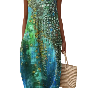 The Leah dress is our best-selling favorite for every day, now featuring a mesmerizing design inspired by the coral reef in natural green and deep blue tones.