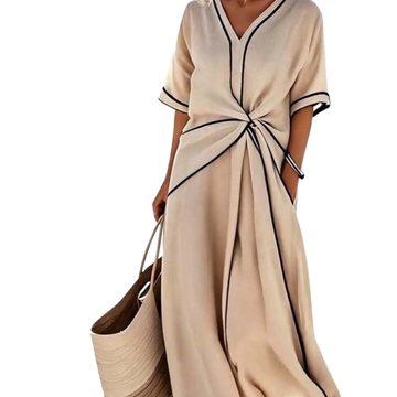 The Emilia dress captures effortless charm and refined elegance in one timeless design. Made from lightweight, soft woven material with graceful draping around the waist, it creates a feminine silhouette that is both stylish and comfortably chic.